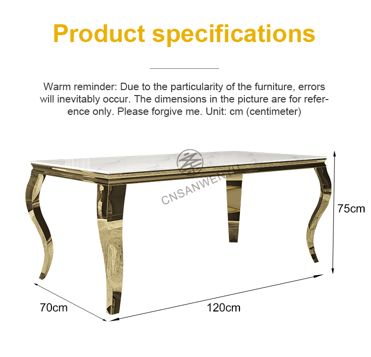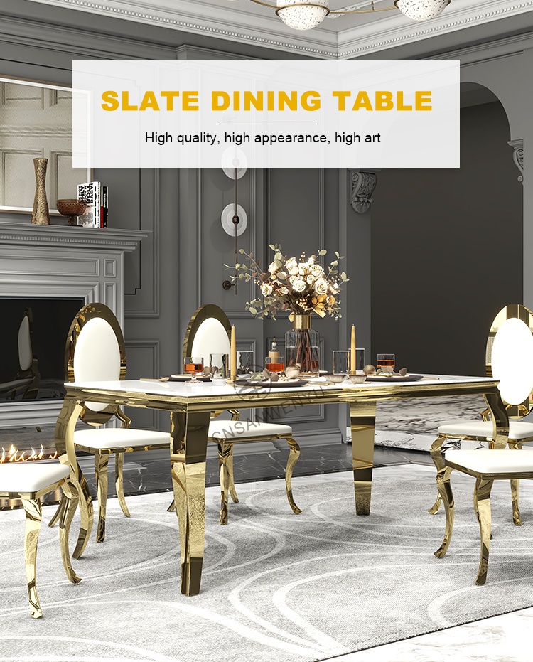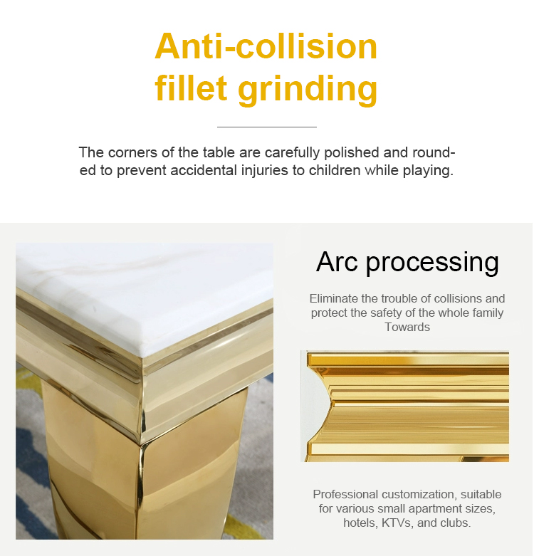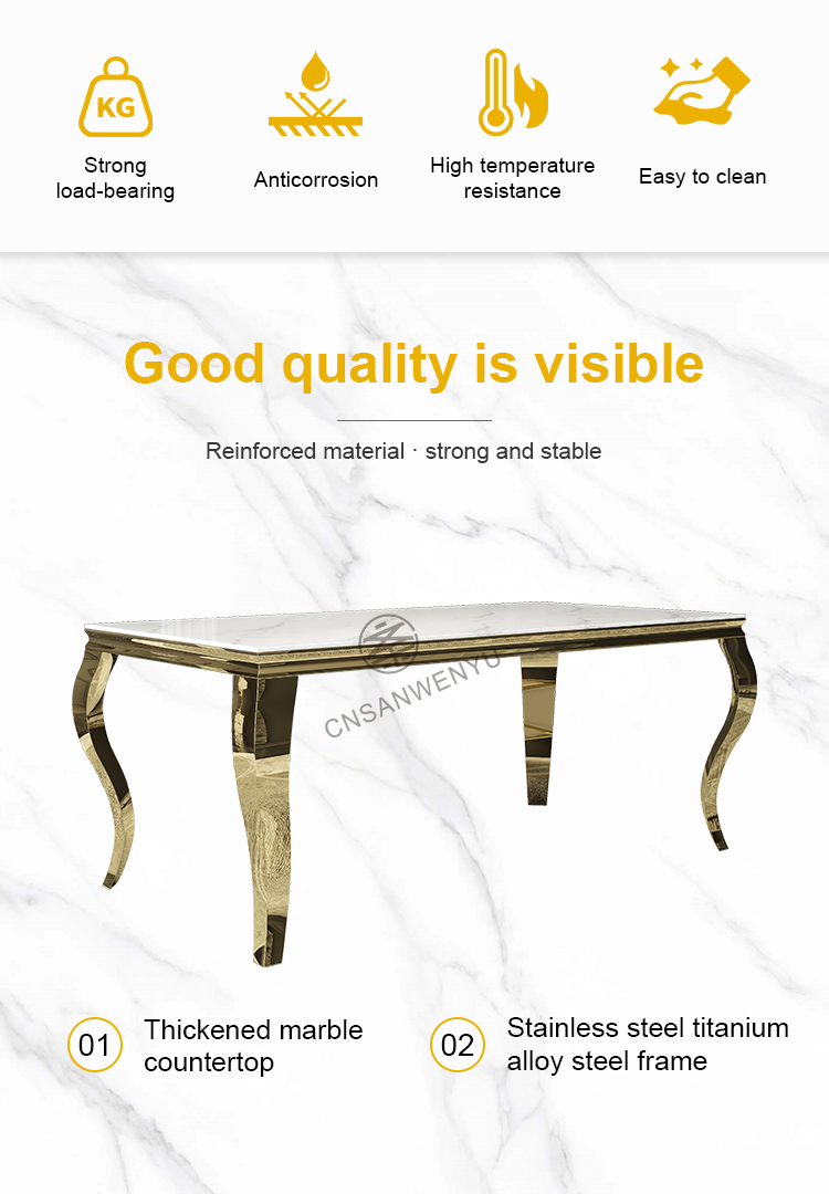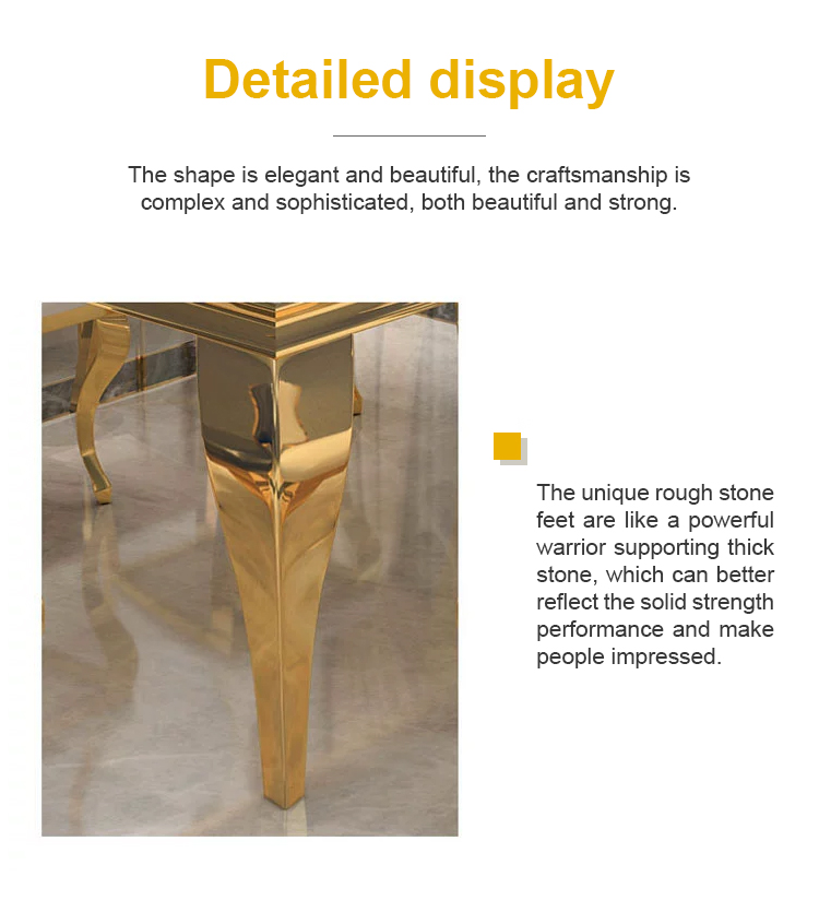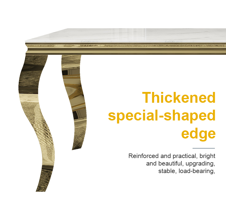 Luxury Rectangular Wedding Table | Golden Stainless Steel & Thickened Marble with Bent Leg Design