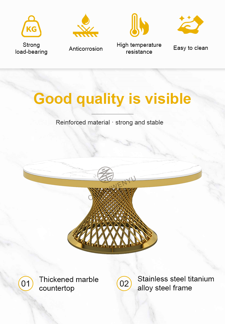 Luxury Round Banquet Table | Thickened Marble Top & Bird's Nest Steel Legs for Weddings & Events
