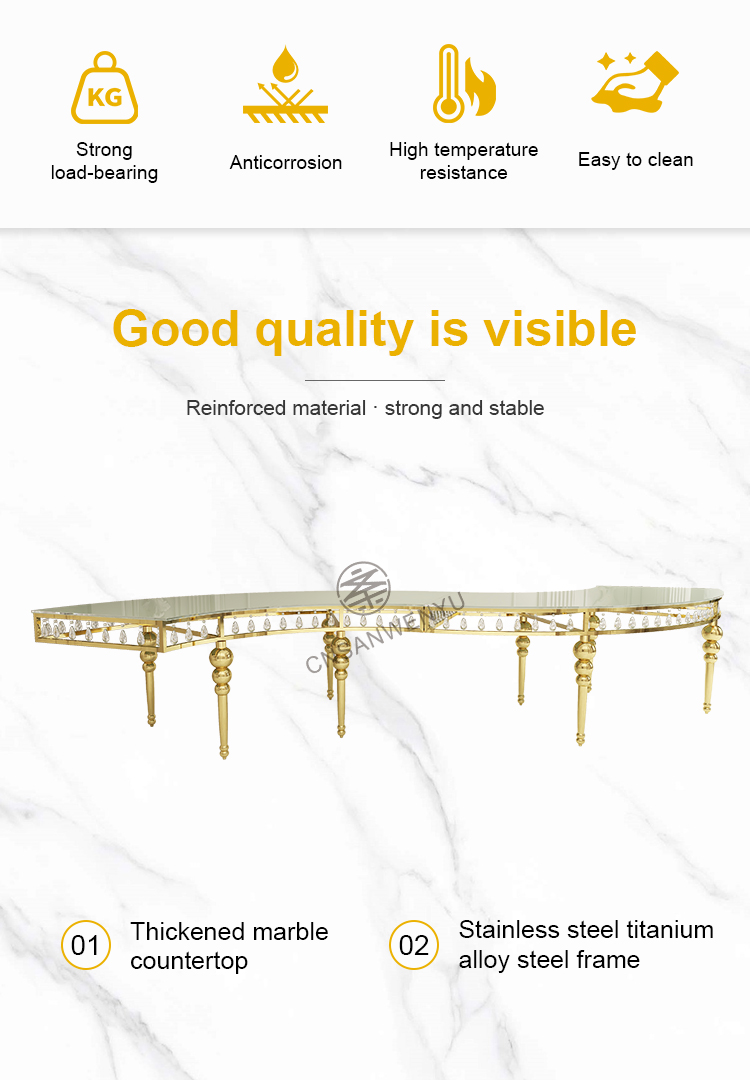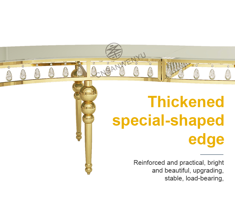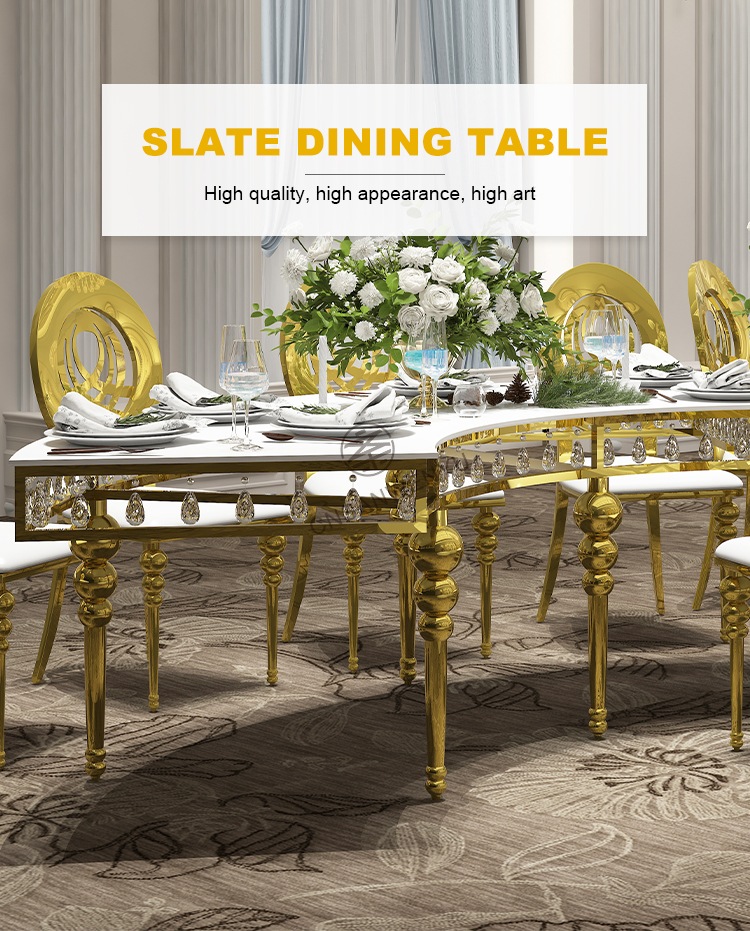 Luxury Spliceable Gold Round Dining Table | Stainless Steel Pendant Wedding & Event Supplier