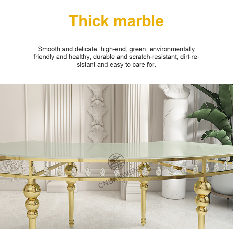 Product Name: Luxury Stainless Steel Pendant Table - 80cm Marble Top Banquet Solution (MOQ 2)