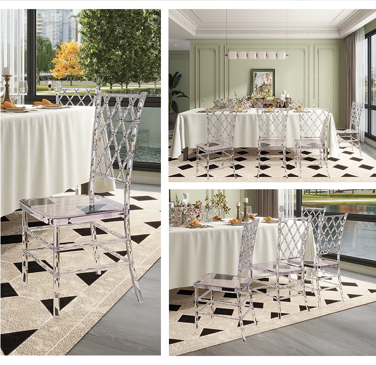 Product Name: Mesh Cross-Back Crystal Chair - Detachable UV-Resistant PC Banquet Seating (MOQ 100)