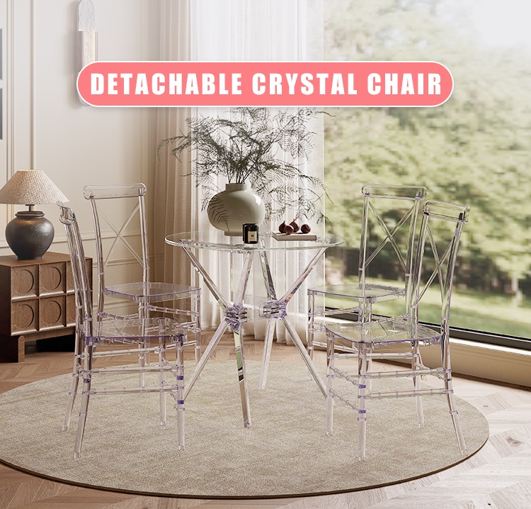 Product Name: Cross-Back Crystal Chair - Detachable UV-Resistant PC Banquet Seating (MOQ 100)