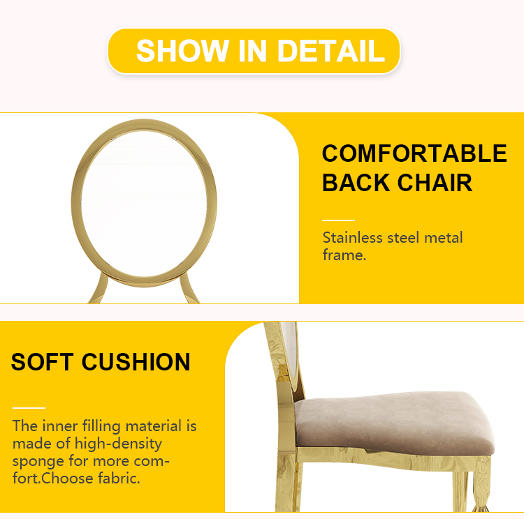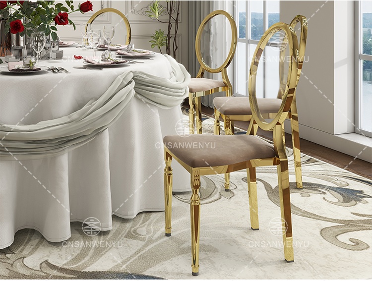 Wholesale Gold Stainless Steel Dining Chairs | Transparent Back for Weddings & Banquets
