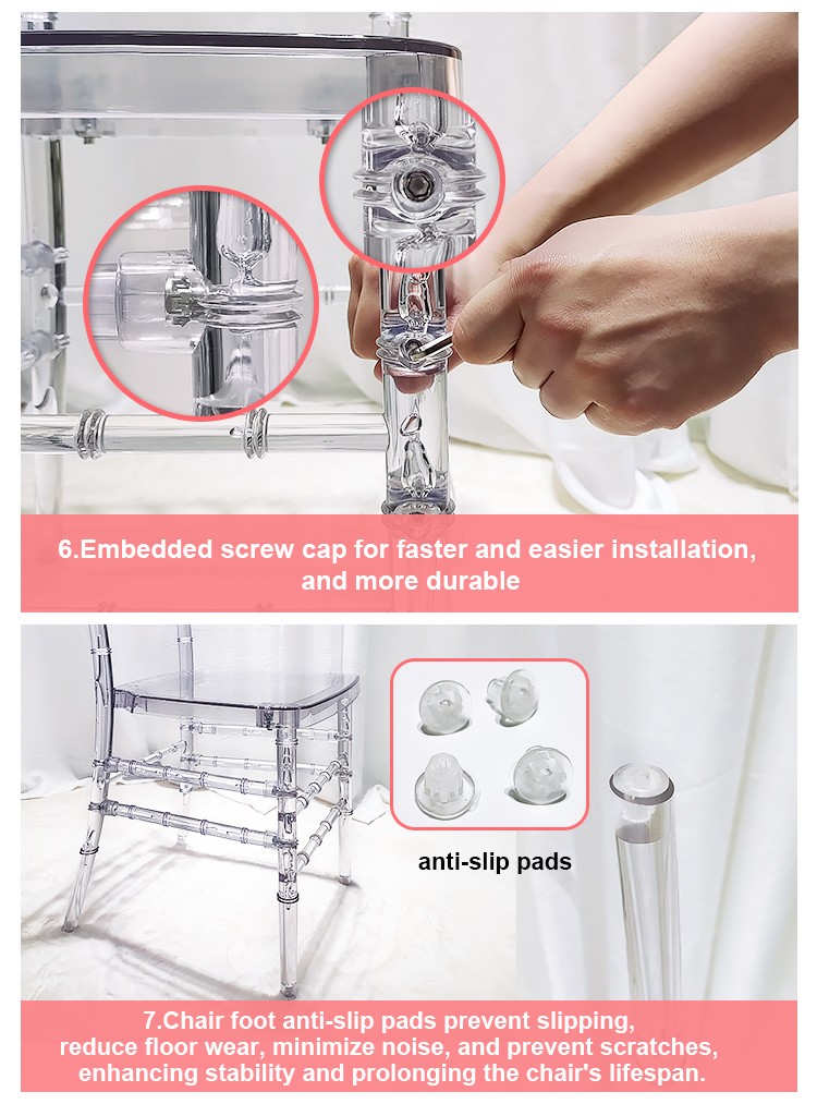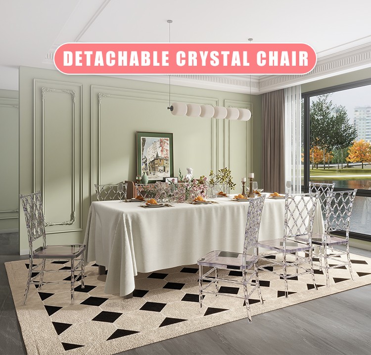 Redefine event elegance with our detachable grid crystal chairs, crafted from Saudi Arabian UV-resistant PC (2–3 year antioxidant lifespan). Featuring a robust 250kg weight capacity, seamless waterproof molding, and tool-free assembly, these chairs merge diamond-like transparency with industrial durability. Ideal for weddings, galas, and high-end venues across Europe and America.